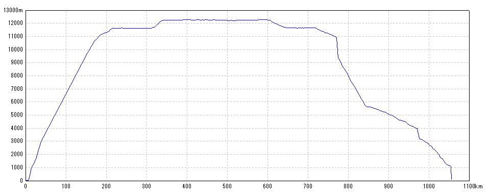 | 水平距離 | 1054.66km | 沿面距離 | 1056.83km |